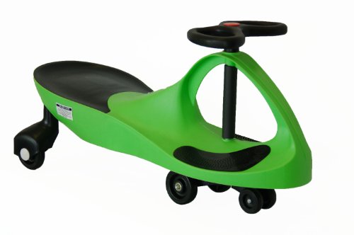 The Wiggle Racer ride-on Car doesn't require an expensive power source that needs constant replacement. Just a cookie or two will do the job. No batteries! No power-cells! No liquid fuel! It provides kids with plenty of exercise, more so than most toys. All it needs to operate is a driver and a smooth, flat surface. So much fun, kids never dream they're getting a spectacular workout. This is a mechanical marvel that works like magic. All it takes to move the Wiggle Racer Car is a simple movement of the steering control from left to right. It can carry up to 220 pounds! That's right! Dad and kids can all ride together. Go Ride 'em! This space-age ride-on car relies on gravity, friction, and kid-power! Simply turn the steering wheel to make it go, go, go. Operates silently; all you'll hear are the giggles. KIDS GIGGLE THAT IS WHY YOU GO WIGGLE!!!