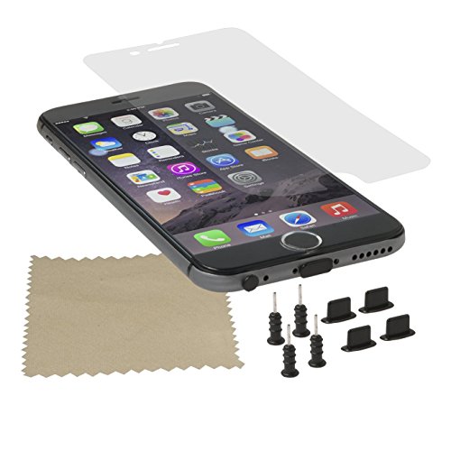 Protect Your Investment and Keep Your iPhone 6 safe!With our iPhone 6 protection pack, your phone is much more likely to stay in good condition and remain undamaged. The PortPlugs iPhone 6 Protection Accessory Pack includes: • 5 pairs of anti-dust plugs made with soft silicone • 1 clear screen protector with UV protection • 1 cleaning cloth The protection accessories in the pack are crafted to fit your iPhone 6's 4.7 inch screen perfectly. The port plugs are made of food grade soft silicone and are fully compatible with the lighting ports in your iPhone 6, and will not require replacement for a long time. The port plugs protect the lighting and headset ports from dust, dirt, debris, and small amounts of liquid that can otherwise damage your phone from the inside. Port plug include a built in SIM card removal tool that can be extremely useful when it comes to switching phones and devices The clear screen protector is multi layered and comes with UV protection, preventing your phone from rays, scratches, and other wear and tear. Easy application of the screen protector leaves no residue. The cleaning cloth keeps phone screen clear of handprints and dirt. The port plugs, as well the screen protector, are easy to apply and can be installed without any professional help. These protective accessories will safeguard your phone from everyday abuse like dust, dirt, and liquids entering the phone and prevent the buildup of scratches and scrapes on the screen.