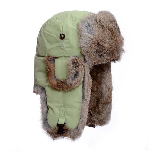 Mad Bomber rabbit Fur Bomber with Quilted Lining. Ear flaps that button down or up for easy listening. Chin flap can be worn down around chin for that ultimate warmth or click over head for that cap look.