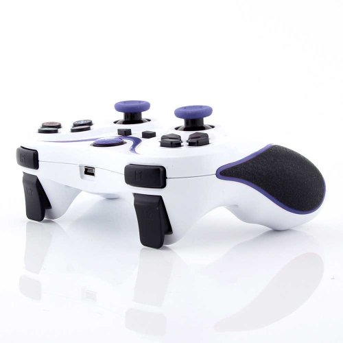 Suitable for all fighting, flying, racing, shooting games which support joystick operation Unique style, shock function, support force feedback game, Ergonomic design for comfortable grip Built-in lithium-ion battery, USB cable is not included • Item Condition: New • Color:White Blue • Material: Rigid Plastic • Type:Joysticks & Game Controllers • Compatibility: Sony PlayStation 3 / PS3 Package Includes: 1 X Wireless Bluetooth Game Pad Controllers (Accessories Only, Device not included)