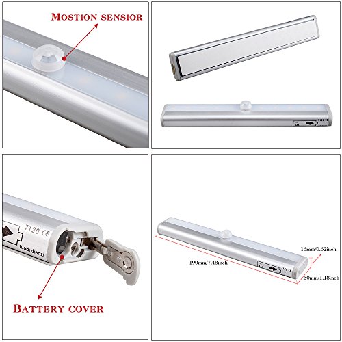 KEDSUM® Wireless Motion Sensor Light: Using passive infrared (PIR) technology to sense human motion (within 3m) by accepting the body's radiant heat, KEDSUM Wireless Motion Sensor Light turns on or off based on room occupancy and ambient light level. It is a perfect light source for every room in the home or workplace. Easy Installation: with 3M sticker back and a Removable Soft Super Magnetic Tape, NO need of screws, wires or switches, just stick it wherever you want! Light color: White LED Qty: 10 LED Material: Aluminum Sensitive Angle: 140 degrees LED life: 80,000 hours or more Size:7.4 inch x 1.18 inch (L x W) Super sensitivity > 3 meter Distance Power supply: 4 X AAA batteries (not included) Light-emitting delayed extinction time: 15 seconds Package includes: 1 x 10 LED Wireless Motion Sensor Light; 1 x User Manual Note: KEDSUM Wireless Motion Sensor Light won't light up during day time when it is bright enough. Don't put 2 KEDSUM motion activated LED night lights too close. The light of one night light may cause the other not light up if they are too close.