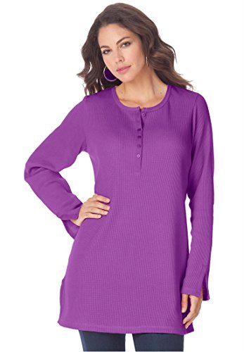 Our best-selling thermal henley plus size tunic is a quintessential piece for flattering layering, a look which is absolutely perfect for all of your social functions. this flattering top beautifully fits the bodice, creating a flattering waist and flows away at the hips to give a feminine hourglass figure alluring scooped neckline is generously cut to give you a fit that's flattering and flawless long sleeves fall right below the wrist for an effortless fit and cozy warmth the feminine full sleeve of this beautiful tunic creates a lovely, flowing shape that's ultra chic and comfortable slits at cuffs allow for comfortable movement and flow gracefully falling to about 32" the tunic sits right below your hips for a gorgeous silhouette stylish silver buttons make a subtle statement to this effortless tunic cotton/polyester machine wash imported Women's tunics, women's plus size tops thermal henley tunic, sizes S (10W-12W), M (14W-16W), L (18W-20W), 1X (22W-24W), 2X (26W-28W), 3X (30W-32W), 4X (34W-36W), 5X (38W-40W), 6X (42W-44W) This style tends to run large. For a better fit, we suggest ordering one size smaller. In Style Now!This thermal knit henley tunic is a must have! It is an essential top this season because it's perfect for layering, a timeless and effortless look. This style tends to run large. For a better fit, we suggest ordering one size smaller.