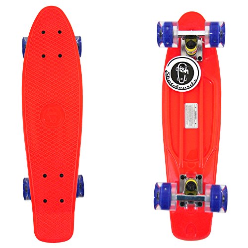 This is an awesome 22" plastic retro skateboard made by Fish Skateboards. It's great for cruising around town, the beach, or cities. Featuring smooth and fast ABEC-7 bearings & polyurethane wheels, super strong plastic injection molded blank deck with the classic waffle pattern grip, and retro blank trucks. These boards are built to last!