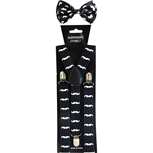 Look dapper in this men's Black & White Mustache Suspender & Bow Tie Combo Pack by Buckletown! These suspenders feature a classic Y-back design and 3 secure clips for easy application, while the bow tie is pre-tied and ready to wear! When a normal neck tie and suspenders just won't do, you will certainly be the envy of all your friends in this Mustache Combo Pack! One size fits most.