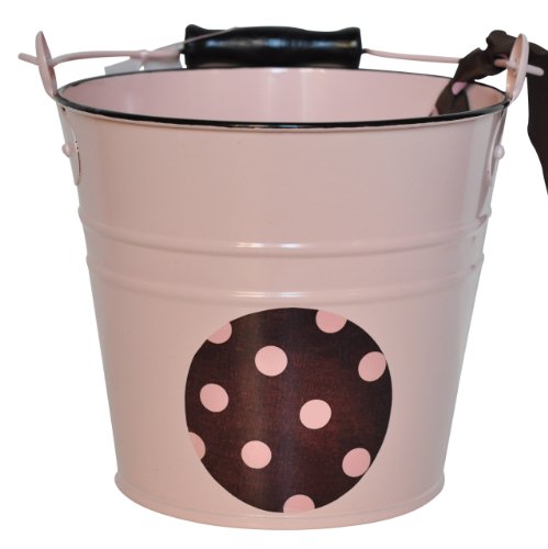 Take a hop, skip and a jump back into the good ol' days with this darling vintage-style enamelware bucket in pink. A pink & chocolate polka dot decal adorns the bucket along with a ribbon. Bundle your gift in it for the baby shower, then afterward the mommy-to-be can use it to hold diapers on the changing table or just display on a shelf. This is sure to be the cutest gift at the baby shower!