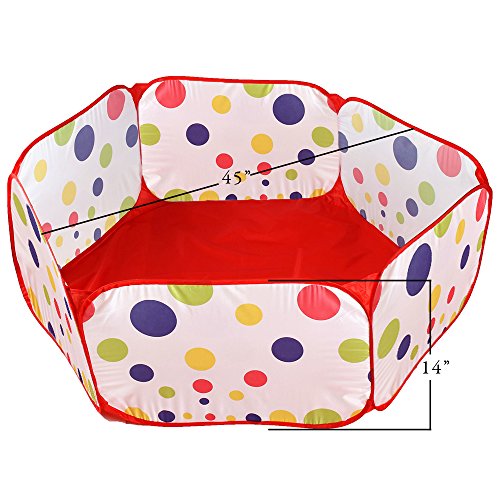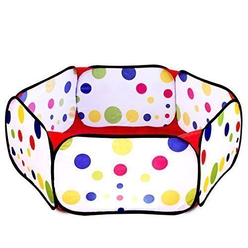 Playtime is a Pleasure in this Hexagon Polka Dot Children's Playpen Give your little one a place to play in peace with this adorable and ultra-convenient little polka dot playpen. Its twist-to-open technology makes it a breeze to set it up and break it down in just a few seconds without any frustrating ties or snaps to have to worry about. Meanwhile, its cheery design and potential for fun is sure to light up your child's imagination right before your very eyes. Perfect Portability & Design The Hexagon Polka Dot Children's Playpen comes with an attractive carrying case and, at only 16.3oz, is lightweight enough to make it ideal for taking with you wherever you go. Pop it open at the park or in your living room for a quick and easy playground for your child. The mesh netting insets allow you to keep an eye on your tot, as well as allowing air to pass through so that naptime in the playpen is more comfortable. Finally, the sturdy material is tough enough to withstand the play of even the roughest toddler and yet with its flexible sides it makes it easy for toddler to crawl in and out of it. This product is unquestionably one of the most versatile playpens that you'll find on the market. It can easily be used for two tots to engage in some social play, but it also makes the perfect place to allow your baby some quiet time to his or herself. You can also buy plastic balls and fill it up with them to turn the playpen into an exciting ball pit that your child will never want to come out of. Made by Playou Play Tents, you can rest reassured that this product is made to the strictest standards of both quality and safety. Our brand is ranked as the best in our industry and is an award-winning producer of top-quality play tents. Order your Playou Tent now by clicking the orange "Add to Cart" link on the right hand corner and enjoy your tots thrill!