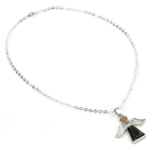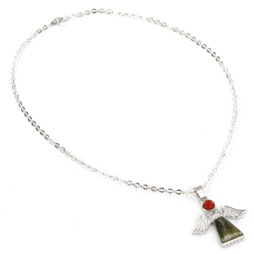 Angel Design Pendants with Gemstones - Labradorite, Blackstone, Serpentine Quartz - Includes One 18" Silver Plated Chain Necklace