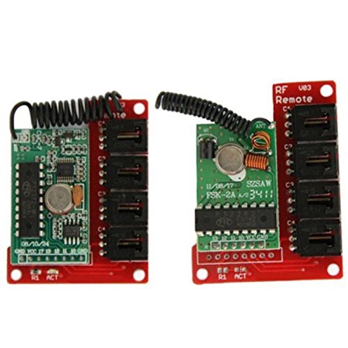 New: A brand-new, unused, unopened, undamaged item in its original packaging (where packaging is applicable). Packaging should be the same as what is found in a retail store, unless the item is handmade or was packaged by the manufacturer in non-retail packaging, such as an unprinted box or plastic bag. See the seller's listing for full details.See all condition definitions- opens in a new window or tab... Read moreabout the condition433MHz RF Romote Module Kits -Arduino Compatible This 433MHz RF Module Kit including one 433MHz RF Receiver Module and one 433MHz RF Transmitter Module.This is the update version of this module kit, and the useage is the same as old versin as below :This group RF modules contain: transmitter and receiver module, it can supply 4 channels to communicate, that's to say if you use them to control mini car, they have just four direction key.This is transmitter module :This is cooresponding receiver :If you want to experiment these two module, only need to connect them to sensor shield by cables, for example you can connect the first channel of the transmitter module with the Arduino digital I/O pin 7, and the receiver to Arduino digital I/O pin 8 :I wish once push one button, RF transmitter module send the signal, and after the receiver module receive the signal, light the Arduino's LED.So you can connect Arduino digital I/O pin 2 with a digital button module, in order to receive the signal :Download the program into Arduino :int ledPin = 13;int switchPin = 2;int sendPin = 7;int recvPin = 8;int value = 0; void setup() { pinMode(switchPin, INPUT); pinMode(recvPin, INPUT); pinMode(ledPin, OUTPUT); pinMode(sendPin, OUTPUT); }void loop() { value = digitalRead(switchPin); if (HIGH == value) { digitalWrite(sendPin, HIGH); } else { digitalWrite(sendPin, LOW); } value = digitalRead(recvPin); if (HIGH == value) { digitalWrite(ledPin, HIGH); } else { digitalWrite(ledPin, LOW); }}Once push one bu