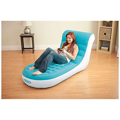 Whether lounging indoors or poolside, the aqua-blue Intex Caf? Splash Lounge Chair provides comfort, stability, and versatility. Designed with a waterproof-flocked surface, and puncture-resistant 2-ply reinforced vinyl bottom, this lounge chair is perfect for relaxing inside or for outdoor use on your patio, yard, or poolside.