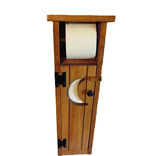 A rustic, primitive, whimsical piece with cottage charm. Cute and easy to use. Pictures are stock photos so your Outhouse Toilet Paper Dispenser and Storage cabinet may have different wood grains because each piece is handmade by skilled Amish craftsmen (The Amish Guys). This charming piece LOOKS old but in fact it comes to your straight from The Amish Guys workshop. The outhouse was stocked with Charmin Mega Rolls toilet paper during the photo shoot, but it was a tight fit. The front and two sides of the outhouse have the same Honey Oak primitive, rustic, flat finish with no shine. Your Outhouse Toilet Paper Dispenser and Storage cabinet will come to you fully assembled and ready to be used (toilet paper not included). This is good quality workmanship piece, which The Amish Guys are famous for. It's handcrafted of ¾" thick slab pine wood panels. The Amish Guys use NO pressed wood, particleboard or veneer in making their furniture. A lovely treasured piece built by The Amish Guys - giving you centuries of traditional wood skills. An unusual piece you'll be proud to won for many years to come.
