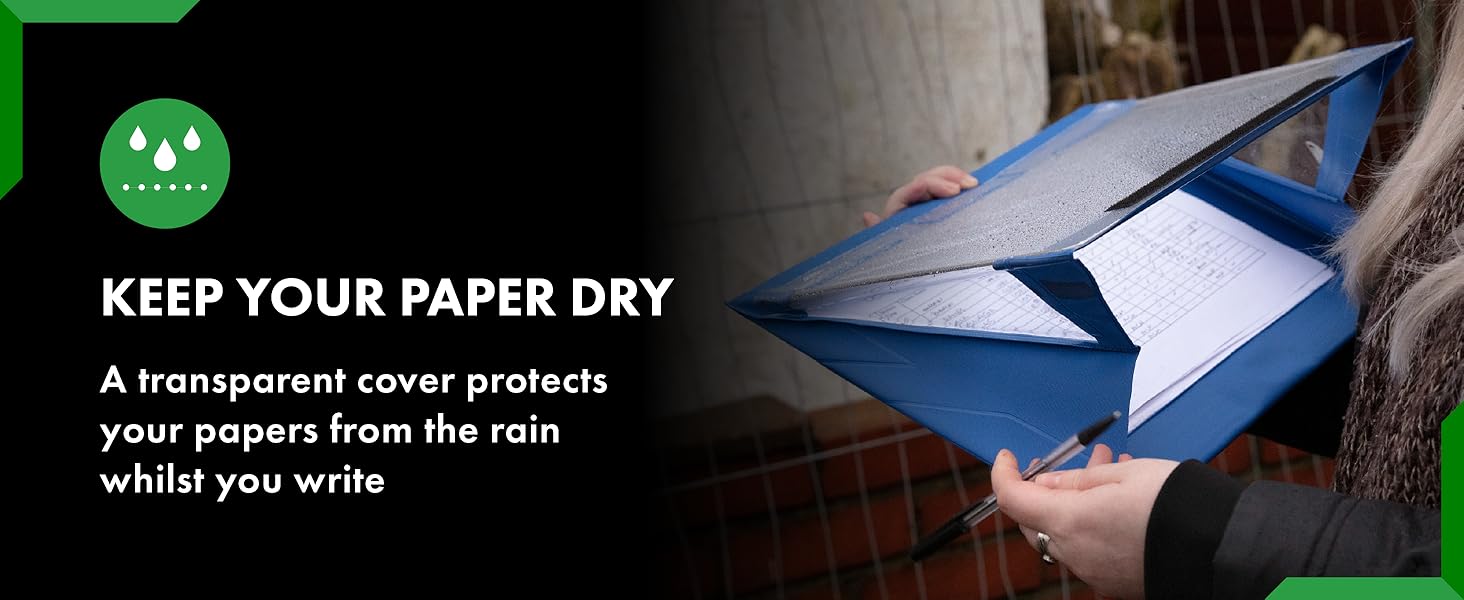I previously had an A4 version of this item and was delighted when they offered the same thing in A3 and in blue instead of black or red. I use it for record keeping during competition in my shooting sport and it keeps all my paperwork dry. The extra space over an A4 paperdry is a real benefit.The real bonus is that the Paperdry costs a lot less than a WeatherWriter and I cannot tell the difference in quality.