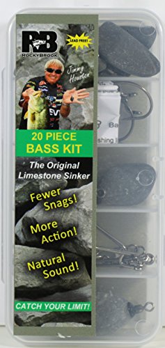 Endorsed by some of the biggest names in professional fishing, Rockybrook sinkers are your only choice for natural-look, lead-free sinkers. The patent-pending design is handmade in the USA and comes in a variety of sizes and shapes. Since the sinkers are made from naturally occurring limestone, no two sinkers are alike. No other sinker on the market gives you camouflage in the water like Rockybrook Sinkers. Each Shaky Head Kit Contains: (2) 3/16 oz Limestone sinkers (2) 1/4 oz Limestone sinkers (2) 3/8 oz Limestone sinkers (1) 1/2 oz Limestone sinkers (2) Offset worm hooks, size 2/0 (2) Offset worm hooks, size 4/0 (2) EWG light wire hooks, size 3/0 (2) XS EWG light wire hooks, size 4/0 (3) Snap swivels, size 7 (1) Rig guide (1) Tackle case