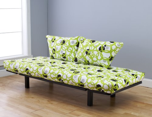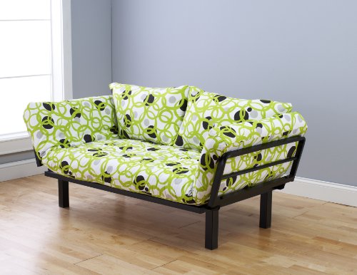The Hennepin Contemporary Daybed Futon Lounger with Black Metal Steel Frame is a terrific addition to any living room, guest room or kids room. This versatile 3-in-1 product with click-clack frame smoothly transitions from plush loveseat to cozy day lounger to a comfortable and relaxing twin size flat bed. The richly patterned 100% polyester microfiber covering and sturdy powder coated black metal frame provide sophisticated styling that will work with any decor. Our tuffted 6-inch mattress is constructed of a foam core middle wrapped with cotton batting. The mattress measures 79-inches x 32-inches x 6-inches. When set up as sofa the sitting dimensions are 66-inches x 33-inches x 31-inches. The lounger dimensions are 72 inches x 33 inches x 31 inches. Spot clean when needed. One year limited manufacturer's warranty. Available in Tree Hugger, Twilight Mosaic, Full Circle, Ariel, Palisades, Sprite, Flourish, Heiroglyph, Entangled, Cool Runnings, Meadowlark, Webcrawler