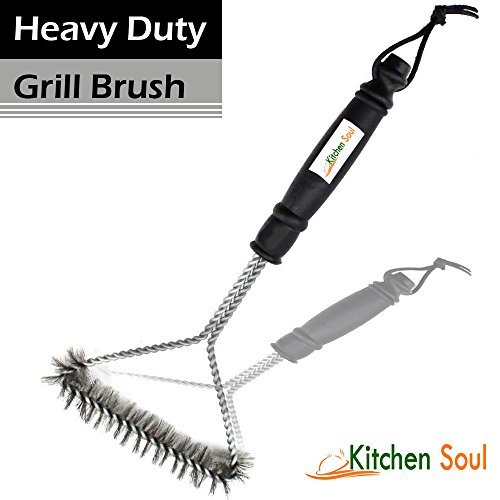 The Best BBQ Grill Brush on The Market Pratical and excelent design for your outdoor Barbeque THe FACT is: The bristles in most brushes point in the same direction. !This means they can only be held horizontally. With the Kitchen Soul Grillers brush, bristles point in all directions so you can hold it at any angle and easily clean all parts of the grate. Benefits of having a 3 sided grill brush - Strong plastic reinforced twisted wire shaft that will not bend under pressure - Stiff stainless steel bristles than won't flatten - much stiffer than brass - Innovative spiral bristle design allows you to easily clean edges, corners and deep between the grates Wire Grill Brush with Stainless Steel Bristles/Heavy Duty Grill Brush for Porcelain Coated Grills, Stainless Steel Grates & Cast Iron Grates - Best Grill Brush Cleaner Has 12' Inch Long Handle to Protect Your Hand From Grill - 3 Sided Grill Brush Design Does Not Require Grill Scraper - Stainless Steel Grill Brush Is Stronger Than Brass Grill Brush - Wire Grill Brush Bristles Reach Corners, Edges, and in Between Your Porcelain Coated, Stainless Steel, or Cast Iron Grill Grates TIME FOR YOU TO BUY YOURS NOW, BETTER YET TAKE ADVANTAGE OF OUR INTRODUCTION PRICE! - SATISFACTION GUARANTEED!