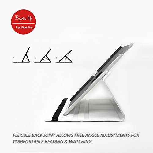 Exotic life, a quality product within your reach! This Fintie 360 Degrees Rotating Case Cover for iPad is a must have a perfect companion for an easy and enjoying life. It is designed with functionality and visual elegance in mind, this case is not typical. Design: - Built-in Stand: Case converts into a stand to hold the device upright for hands-free viewing of video, online books and more. - Hard-Shell: Hard-shell design offers a molded exterior to protect fragile glass displays that are prone to damage when bent. - Scratch-Resistant Lining: This soft-to-the-touch material is designed to help prevent scratches on sensitive accessories such as sunglasses or mobile phones for worry-free travel - 360°Rotating: Making it simple to transition between landscape and portrait options, the 360-degree feature allows for more viewing versatility while keeping your device in the case Compatibility: Apple iPad Pro (2015 Model, 12.9 inches) Product Contents: 1x Fintie Rotating Case 1x Screen protector This product is sold exclusively by Fintie LLC. Only buy from Fintie for our authentic products with manufacturer's warranty.