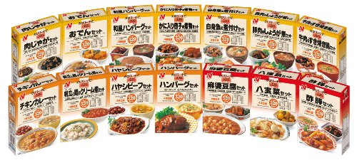 "Calorie Navi 14 Meals Set A" is a menu with 320 kcal per meal for which the nutritional value has been rigorously calculated. Recommended for your body and your beauty. You can enjoy authentic taste thanks to selected ingredients and chef's proficient skill. You only have to heat it up as it's Retort style. Try these delicious and healthy menus for your wellness. "Set item" is (Nikujyaga) meat and potatoes set, Southern boiled chicken set, Japanese-style Hamburg set, Cooked food set that contains dumpling with crab, Ginger-braised pork set, Beef sukiyaki-style set, Chicken curry set, A set of poached patinopecten yessoensis and chicken with cream, Hayashi beef set, Set of Hot & Sour soup, Chicken chili sauce boiled set, Chop suey set, Sweet & sour set, Pork and bamboo shoot ankake set