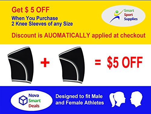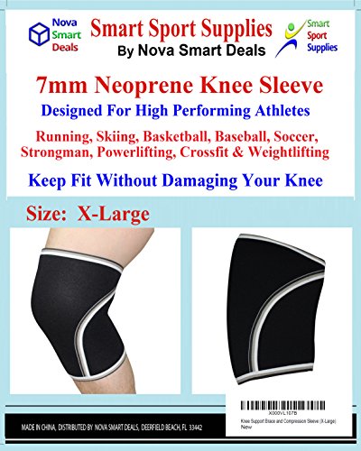 Our Premium Quality 7mm Neoprene Knee Support Sleeve is Durable, light weight and comfortable. Specially designed with Reinforced Stitching to protect and support the knees of high performing athletes while practicing running, skiing, basketball, baseball, weight lifting, CrossFit or any other sport that requires heavy use of legs. Comfortable for both Women & Men. SUPPORT WITHOUT FLEXIBILITY: Neoprene is a Lightweight, Soft, Flexible and Durable synthetic sponge rubber that has many unique features. It offers Water Resistance, Moisture Insulation and is Shock Absorbent. STAYS IN PLACE WHILE EXERCISING: Neoprene is a Stretchable, Elastic and Form-Fitting material; it conforms easily to the knee's varying sizes and shapes during heavy exercise, so this knee sleeve will stay in place, tight and comfortable during your whole workout. DURABLE and BUILT TO LAST: The 2.7mm content of SBR Neoprene has Excellent Abrasion Resistance, Crack Resistance and Generally Better Aging Characteristics than any other synthetic material. Do your hardest workout and your Knee Sleeve will be ready for more. These Knee Support Sleeves were designed for high performing athletes, which means they can be used daily and won't stretch out or come apart at the seams. INCREASE PERFORMANCE: Whether you're a top performing athlete or a novice, these Knee Sleeves will help you perform at the top of your ability, a "Must Have" for Squats, Running, Basketball, Baseball, Weight Lifting, CrossFit, etc. 100% Latex Free, so none of the allergies that are associated with latex will be found in our Neoprene Knee Support. 1 Year Warranty Check The Sizing Chart In The Images For The Best Size For You. Sold As A SINGLE Knee Sleeve. Buy A Second One And Get $ 5 Off. Click the Add to Cart Button at the Top of this Page to Protect Your Knees Now!