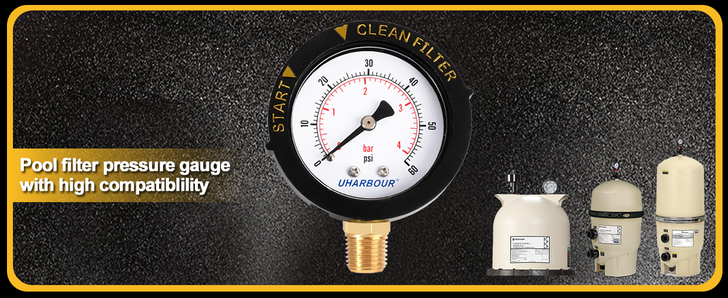 This professional-grade 60psi pool filter pressure gauge features a large 2" dial with dual-color scales for easy reading, a durable brass wetted parts design ensuring ±2.5% accuracy per ASME standards, and a corrosion-resistant 1/4" NPT bottom mount. Ideal for swimming pools, spas, and aquariums, it includes a twist bezel with a start/clean filter marker to optimize maintenance and performance.