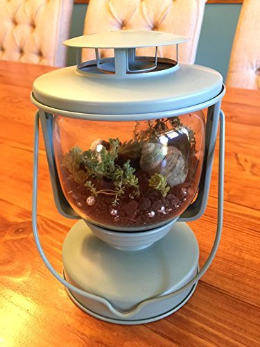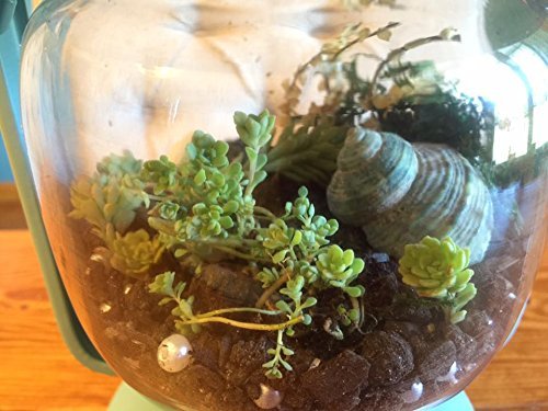 This Vintage Lantern Tabletop/Hanging Succulent Terrarium is one of a kind and every one of our terrariums have an element of bling. This one is beautiful with pearls, several shells, moss and dried cream colored blooms. The colors represented in this great zen garden gift are robins egg blue, cream, pearl white and light & dark greens. With live green succulents (Sedum) and preserved moss, this low maintenance garden is perfect for anyone- green thumb or brown thumb! Each terrarium is handcrafted and unique which is why they make perfect centerpieces and decor for any room and occasion. All our items are great for host gifts, office gifts, housewarming gifts or just because gifts. They blend with any decor and we can customize specific colors/themes to accommodate a more modern home decor. This sedum succulent plant is easy-to-care for in the terrarium and requires little attention. Just give it sunlight and mist your terrarium every week (more often in warmer 70 degree+ climates) Message me for more info or special request. This lantern is 7 1/2 inches tall without the handle. ALL arrangements shipped within the United States are shipped USPS Priority Mail 2-3 day. Items shipped to Canada will be shipped USPS First Class Mail - please allow 7- 14 days for delivery due to customs.