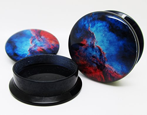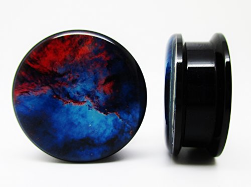 Pierced Republic Nebula Blue & Red Galaxy Ear Plugs - Acrylic Screw-On - 10 Sizes - Pair