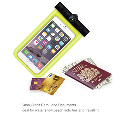 Feature When you need a raincoat to venture out into a storm why expose your expensive smartphone to the elements all by itself? The Gaosiya Universal Underwater Case acts as a barrier between the phone and the environment protecting it from liquid spills and even preserving its functionality under water! Protection Guaranteed Even Underwater Never again have to worry of losing your important phone data due to liquid seepage. Be it rain, a quick dip in the sea or a sauna session, the Gaosiya Universal Waterproof case will keep your phone safe, sound and dry - IPX8 certified to 100 feet or 30 meters. Unhindered View Just because your phone is enclosed in a waterproof case doesn't mean that it can't be accessible. With Crystal Clear windows to both sides, taking videos and pictures is no different than without the case. Designed to allow touchscreen functionality, touch and type away on your phone even while underwater! Snap Lock Mechanism Easy to use, this waterproof case features a simple snap locking access that can quickly seal your precious smartphone before the storm sheds its weight. Universal Design Compatible with all touch phones, it works with the latest high end devices such as iPhone 6, 5, 5C & 5S, HTC One/One X/X+, Note 2, Note 3, Nexus 4, Droid Incredible, Droid DNA, Windows Phone 8X, Nokia Lumia and Samsung Galaxy S6, S5, S4, S3 and more. Will easily accommodate any smartphone under 4.8". Compass function Whereever you are,All will give you the best guide