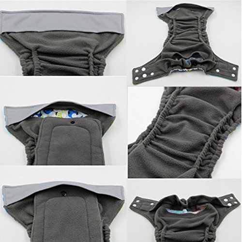 Disposable nappies are getting very expensive. Why not get these reusable, washable super-absorbent and comfortable cloth nappies/diapers which are also called modern cloth nappies or pocket nappies for your baby? - These reusable nappies and inserts will last for a much longer period of time. - They are economical and environmental-friendly. Diaper: Inner Layer: Charcoal bamboo inside lining is porous, wicking moisture from your baby's bum to keep them dry. This layer can wich moisture away from babies skin and keep bottom dry. Outer Layer: Thermoplastic Polyurethane (TPU) Laminated Fabric, which is water-resistant, breathable and durable. It gives an ideal protection for your baby, the bed and linens from leaking. -How to Use 1. More than one insert may be needed when sleeping or when necessary. 2. Nappy should be changed every 2-3 hours, and when damp, to prevent nappy rash. 3. Hang them up to dry in the sun; or"Low"tumble dry. 4. Do not store nappies for too many days, should be washed within 1 day. 5. No bleach, no softener; wash temperature: temperature under 30℃. Package includes: 1x Diaper 1x Insert