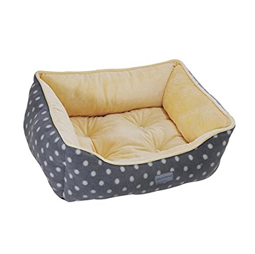 Let the happy and playful polka dot pet bed cheer up your pets, and yourself! The neutral bolster colors are highlighted by the contrast piping and inner cushion colors. The bed has a non-skid bottom to stay put. Made from heavy-weight fleece and micro plush, it feels soft and plush. The entire set is machine-washable and easy care..