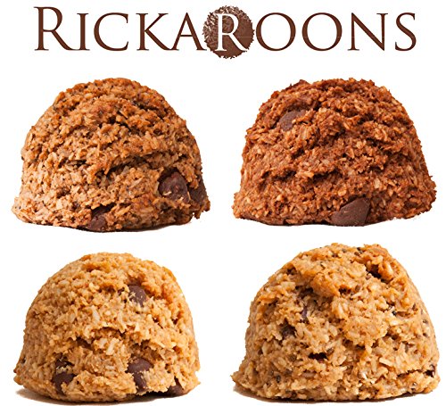 Here's a great way to find your favorite Rickaroon, or just enjoy the variety. Each Large Rickaroon is 1.7 oz and very dense and filling. Rickaroons are built on coconut and almond butter, which not only taste great together, but yield a nice, slow-burning fuel for your body. Rickaroons= the perfect dessert fuel: no flour, all power. Includes one Rickaroon each: Chocolate Blonde: The Chocolate Blonde is the base of the Rickaroon pyramid of success. It is what all of our flavors are built upon - a foundation of coconut, almond butter, and chocolate chips. A perfect combination that will make you feel good while you eat AND after you eat. It doesn't get any better than that. Megaroon: This is our Super Food option. We took the Chocolate Blonde and made a new flavor, perfect for people looking for an extra umph of nutrition. Chia Seeds provide a stable source of long lasting energy as well as fiber and protein. Cacao is the fundamental ingredient in chocolate and is stock full of antioxidants The chia seeds and cacao nibs that we add are of course 100% organic, and add an extra crunch that helps make this our best seller. Mocha Expresso: Our mocha flavor - this is for serious coffee lovers or people looking for a little pick me up. Not for the feint of heart, we put enough espresso in to satisfy a serious coffee craving. Next time you are falling asleep in a meeting, grab a Mocha - a delicious combination of Chocolate and Espresso. Icy Brunette: Our long awaited Mint Double Chocolate Rickaroon is here! We took the original Brunette and added a delightfully cooling, delicious mint that has made this an immediate favorite in the Rickaroons office