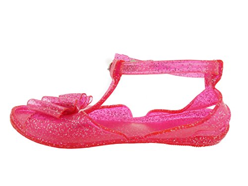 A carefree summer day, what could be better than slipping into a comfortable, stylish, jelly sandal? Perfect for your little princess. Light, easy, and effortless. These sandals come in classic Black and in powerful colors: Fuchsia, Purple, White, Turquoise and Light Pink. And just for added flare, glitter is manufactured right into the jelly throuhgout the sandal. Why get a plain looking sandal? Stand out with glitter! What also set these high-quality jelly sandals apart is their hip, gladiator-like design. For the fashion forward moms, who know which direction the winds of fashion are blowing. Start your toddler on the right path with these jellies. Why Jelly? The unique feel of a jelly sole on her little foot, will slowly mold to the shape of her feet. And what little princess doesn't love bows? Or even if that summer day is in your mind, and it is the middle of the winter, and she wants to just strut her stuff around the house, but feel like it's a beach day- turn up the heat and let her run free around the house with these perfect sandals. Go on, the princess deserves it.