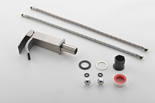 Features *One handle design for precise temperature control *Replaceable ceramic cartridge for smooth water flow and long term usage *High quality corrosion and rust resistant brushed nickel finish *Brushed nickel finish provides a lightly brushed warm grey metallic look *Designed for use with U.S. standard plumbing connections Specification Model: XHG-01L Faucet Type: Bathroom Faucet Faucet Style: Modern Finish: Brushed Nickel Installation Type: None Deck Mounted Construction Materiel: Brass Handle Material: Metal Overall Height: 6.69" (measured from counter top to the highest point on faucet) Spout Height: 3.74" (measured from counter top to spout outlet) Spout Reach: 3.93" (measured from center of faucet base to center of spout outlet) Flow Rate: 1.5 GPM (gallons-per-minute) Faucet installation: 2 holes deck mounted Number of Handles : 1 Sidesprayer: No Soap Dispenser Excluded: No Pre-rinse: No Sidespray: No Soap Dispenser Included: No Valve Type: Ceramic Disc Valve Hose Included: Yes Hose Length: 23.62 inches Hose Connection Type: 3/8"