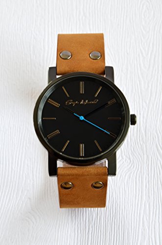 Stylish stainless steel Sergio Montell watch with tailored leather bracelet. Collectable product - developed and improved in cooperation with designers in Italy. Bracelet carefully constructed using only natural, high-quality leather and metal fasteners. Inspired by the simplicity of vintage timepieces, this style has classic appeal. Make a statement with this sleek and definitely stylish Sergio Montell piece. Swiss Quartz movement, black toned case, black toned dial, blue second watch hand, brown nubuck leather strap. Strap handmade from fine Itallian leathers, buckle fastening, one year limited warranty. Please note: Leather is a natural product, colour and texture may vary slightly.
