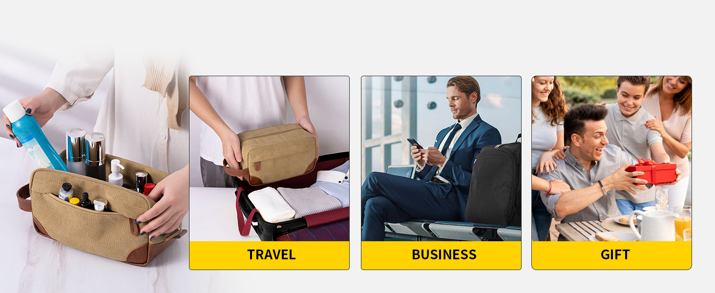 Bought this for my man. He has been using the bag for a few weeks now and it has definitely earned a permanent spot in my travel gear. The quality is top-tier: the canvas material feels sturdy and water-resistant, and the zippers are smooth and reliable. I especially like the hook feature, which makes it easy to hang on a towel rack or bathroom door when space is limited.The compartments are well thought out: there’s enough room for full-size bottles, a razor, toothbrush, deodorant, and more. The mesh pockets help keep smaller items organized without digging around.Visually, it looks sharp: the black color is sleek and masculine without being flashy. Whether you’re packing for a weekend trip or a longer vacation, this bag holds everything you need without being bulky.Highly recommend for anyone looking for a durable, spacious, and well-organized toiletry bag. Would also make a great gift!