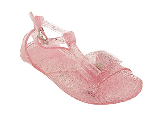 A carefree summer day, what could be better than slipping into a comfortable, stylish, jelly sandal? Perfect for your little princess. Light, easy, and effortless. These sandals come in classic Black and in powerful colors: Fuchsia, Purple, White, Turquoise and Light Pink. And just for added flare, glitter is manufactured right into the jelly throuhgout the sandal. Why get a plain looking sandal? Stand out with glitter! What also set these high-quality jelly sandals apart is their hip, gladiator-like design. For the fashion forward moms, who know which direction the winds of fashion are blowing. Start your toddler on the right path with these jellies. Why Jelly? The unique feel of a jelly sole on her little foot, will slowly mold to the shape of her feet. And what little princess doesn't love bows? Or even if that summer day is in your mind, and it is the middle of the winter, and she wants to just strut her stuff around the house, but feel like it's a beach day- turn up the heat and let her run free around the house with these perfect sandals. Go on, the princess deserves it.
