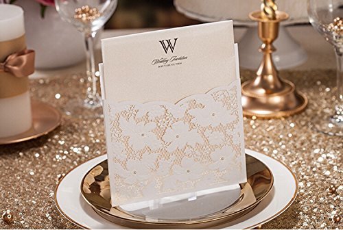 Used for wedding with Blank Inside Color: White (inner sheet), White (pocket) Design: Laser cut Flower with Small Pearl Lace Pocket Material:Pearl Paper Size: 150 mm*150 mm,145 mm*426 mm(Inner sheet) Together with envelopes and seals