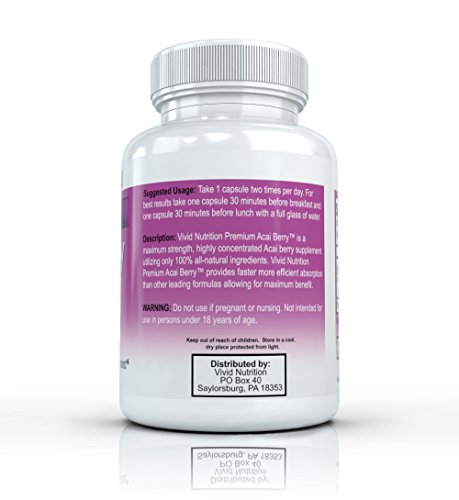 Vivid Nutrition Premium Acai Berry; The highest quality, most potent Acai Berry formula currently available. Several studies have confirmed Acai as one of the most powerful and nutritious superfoods in the world. However many Acai supplements available use low quality ingredients and cheap fillers. Vivid Nutrition high grade Premium Acai berry Formula utilizes only 100% natural, pure Acai berries which allows for maximum absorption creating the most potent Acai supplement available that will help you quickly lose weight, improve muscle tone, flush harmful toxins from your body, and improve your overall health.