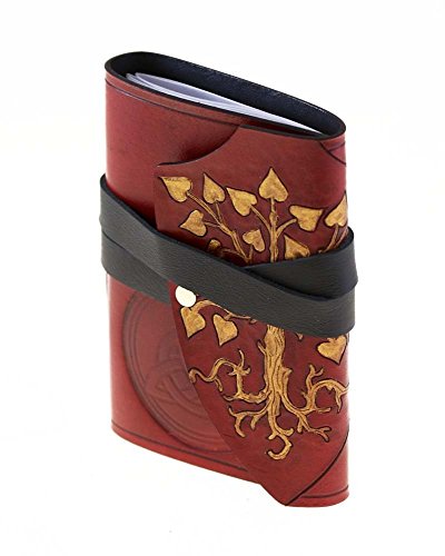 Get inspired with this pocket sized hand carved tree book. From the richness of the red, hand dyed, coloring to the smell of the high quality leather to the feel of the supple tooling hide, that will soften over time, this journal commands attention. It is a statement piece that is just waiting to be filled with all those thoughts, images and reminders you have floating around before they disappear. This book was hand crafted by Edmonton artist Amy Skrocki (Paragon of Design of Skrocki). The casing for this book was created from top quality leather, hand carved and tool, hand dyed, hand painted tree and hand bound. On the inside cover there is a stamp (which has been made in our studio) of a trinity knot. The book can be rebound when you have filled the pages as well, so the case can be used for a long time. We try to create the pieces we always hoped to find, in this way we have created truly one of a kind pieces that no one else will have. The pages of this book are acid free WHEAT STRAW paper made from agricultural by products. This paper is environmentally friendly made from sustainable by-products. Because it is made from wheat straw the texture is slightly different than regular paper and it has small particles of wheat in the paper. The pages are 21 lb , The book is 4.5 x 6 and there are 160 pages double sided. This book can be rebound as well.