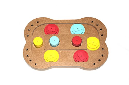 Keep your pet busy when you are home or away. "Dog Brick" requires a dog to first dislodge the removable bones, then to push the sliding covers and access the hidden treats. The level of difficulty for the Brick can be varied, depending upon the dog's experience and his enthusiasm for the game.