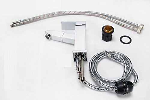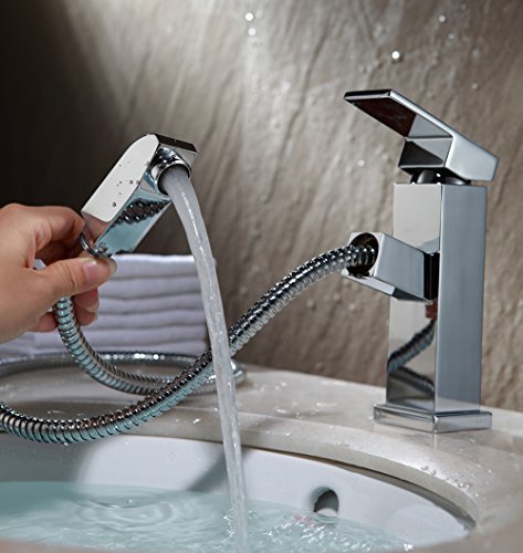 Overall: Graceful form and sleek handles add style and comfort to the bathroom, while its unique pull-out sprayer offers more functions than other bathroom faucets, such as rinsing the sink, cleaning-up after shaving, and washing hair. When not in use, the sprayer neatly retracts into the spout, maintaining elegant appearance. Specifications: Hydraulic Pressure: 0.1mpa-1mpa Overall Height of Faucet: 175mm/ 6.9inch Spout Height: 100mm/ 3.9inch Spout Reach: 110mm/ 4.3inch Outlet Diameter: 20mm/ 0.8inch Shower Hose: Length--1.5m/ 59.1inch; Diameter--12.7mm/ 0.5inch Stretching Length: 70cm-1m/ 27.6inch-39.4inch Carton Package: 40*19*7cm/ 15.7*7.5*2.8inch Mounting Style: Single Hole Flow Rate: 6.8 Liter-per-minute/ 1.8 US gallons-per-minute Package Included: Faucet and accessories Note:The requirement for the diameter of mounting recess is between 32mm-40mm.
