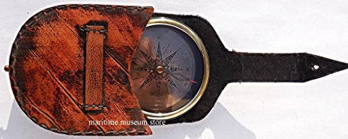 W Ottway's Collectible Brass Compass With Leather Case Robert Frost Poem Direction Compass with Leather Case Brass Pocket Compass with Removable Lid is a beautiful solid brass reproduction of an antique air-damped compass. Under the Lid poem is engraved. The high quality jeweled compass needle settles to North very quickly for timely and accurate readings. The brass cover that unthreads and retreads onto the opposite side where it functions as a holder. The Road Not Taken Two roads diverged in a yellow wood, And sorry I could not travel both And be one traveler, long I stood And looked down one as far as I could To where it bent in the undergrowth; Then took the other, as just as fair, And having perhaps the better claim Because it was grassy and wanted wear, Though as for that the passing there Had worn them really about the same, And both that morning equally lay In leaves no step had trodden black. Oh, I marked the first for another day! Yet knowing how way leads on to way I doubted if I should ever come back. I shall be telling this with a sigh Somewhere ages and ages hence: Two roads diverged in a wood, and I, I took the one less traveled by, And that has made all the difference. Approximate Size:- 8cm - Dia x 2cm - Thick (Compass) 9cm - L x 8.5cm - W (Case)