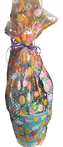 This basket is shrink wrapped and adorned with decorative ribbon. For added protection during shipping, the basket has been placed inside a second festive bag and tied with curly ribbon. Contains no food items. Product dimensions are based on packaging size.