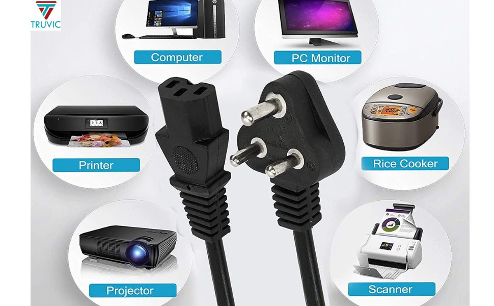 The Truvic Computer Power Cable is a 1-meter, black IEC mains power cord designed for desktops, monitors, and printers. Rated for 250 volts, it ensures reliable and stable power delivery with universal compatibility and durable construction, making it an essential accessory for any professional workspace.
