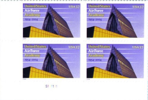 In 2004 the USPS issued this stamp honoring the fiftieth anniversary of the founding of the U.S. Air Force Academy, located near Colorado Springs, Colorado. After the U.S. Air Force was separated from the Army in 1947, Congress authorized the establishment of a school to train Air Force officers. A coded image of a falcon below the denomination is visible when viewed through a U.S.P.S. Stamp Decoder lens.
