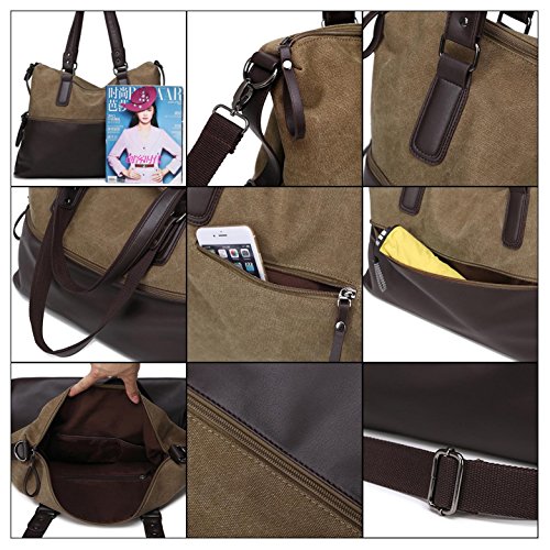 Canvas Bags by UrbagsGet ready to become a mature and organized person when you are out for shopping dating or traveling!Urbags Canvas Bag is made of high quality canvas and leather, poly-cotton lining. Environmentally friendly material, will not fade, feel soft and durable. Simple fashion design, casual and comfortable to wear it. Large capacity suitable for laptop, ipad, books, wallet or travel gears. It's the best gift for you!Item Feature:Material: Canvas and LeatherLining: Poly-cottonClosure Type: ZipperStyle: Travel Totes/Shoulder bag/Cross-body bag/HandbagSize: L x W x H = 19.7" x 5.5" x 13.8" inchesShoulder Strap: 25.6 inches - 47.2 inchesWeight: 26.4 ounces / 750gPackage:1 x Canvas Bag1 x Shoulder Strap