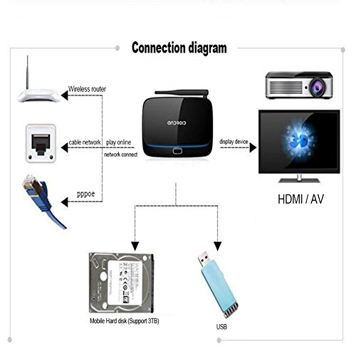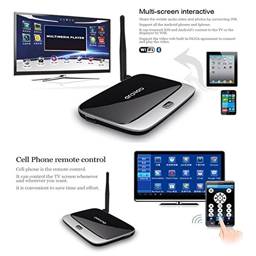 Product Description Capacity: CS918 2GB+16GB Item specifics Condition: - Product Type:CS918 Android TV BOX Streaming Media Player - CPU: Rock-chips RK3128 up to 1.3 GHz, ARM Cortex-A7 ×4 - GPU: Mali 400 - RAM: 2GB DDR3 - Nand flash: 16GB - Operation System: Android 4.4.2 - WiFi: 802.11a/b/g/n/ac, Pretty Strong wifi signal 2.4G - Bluetooth:Built-in Bluetooth 4.0 - Video Decoding: Support 1920x1080p @ 60fps - Video Encoding: Support encoding in H.264. 1080p @ 60fps, 720 @ 100fps - Storage External: Support TF Card up to 32GB - Languages:Chinese, English, Germany, Japanese, Korea etc. 24 languages Interface: - 1 X HDMI Prot - 2 X USB Host - 1 X SPDIF - 1 X AV Out(1x3.5mm Headphone Jack) - 1 X RJ45 LAN Port - 1 X DC Jack(2.1mm) Package included: - 1 * CS918 Android TV Box Streaming Media Player - 1 * Power Adapter (US Plug) - 1 * Remote Control - 1 * HDMI Cable - 1 * AV Cable - 1 * User Manual