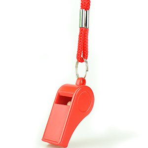 I had a black whistle but promptly mislaid it. It is probably lying in the depths of a sports bag, camouflaged. Without a doubt the red colour of this particular pair of whistles attracted me to the product: there is no chance of this getting mislaid.It is a pea whistle, a little bit cheap and lightweight and made of plastic. It has a handy braided neck cord though, ideal for when on poolside (or sports pitch) and needing one to hand. It also makes a good whistling sound - sharp and shrill if needed.Whilst I like the idea of protecting this from dirt, was it necessary for these whistles to be packed individually, using no less than three different plastic bags? I call that wasteful and excessive.