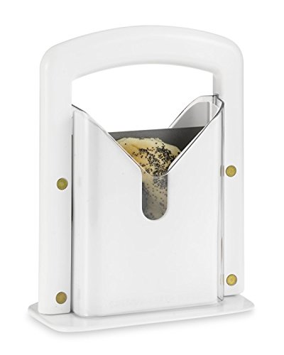 Specifications: - Frame material: White thermoplastic polymer. - Blade material: durable and sharp stainless steel blade. - Size: 7x3.5x9.5 inch. - Weight: 1.3 lbs. - Dishwasher safe. - Packaging: Box Package Content: 1x Bagel Slicer 100% Money Back Guarantee! Get it today - because tomorow pricing can be higher!