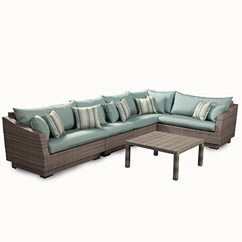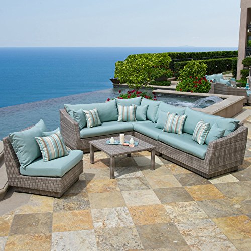 Cannes patio furniture by RST Brands turns any backyard into a destination retreat. view larger Hand-woven, "commercial grade", polyethylene wicker in weathered grey. view larger UV-, weather-, and fade-resistant fabric holds up great in salt and chlorinated environments. Perfect for coastal living. view larger Strong, lightweight, rust-resistant aluminum frame ensures long-lasting durability. view larger Sunsharp outdoor fabric available in Bliss Blue and Slate Gray. view larger RST Brands Cannes Collection Bold, Elegant, Modular Outdoor Seating to Fit Your Lifestyle An afternoon spent on your patio can be a stolen moment in time. Outdoor seating that lets you relax. And a place to get away from it all--that's what good outdoor furniture is for. And that's why RST Brands created the Cannes collection. Modular components make this outdoor furniture versatile and perfect for any size space or occasion. It's where form and function meet comfort in an outdoor seating collection made to kick back and relax on your personal French Riviera. Unlike lower-quality, high-maintenance alternatives, the Cannes collection of outdoor furniture has strength and easy care at the center of its design, ensuring long-lasting good looks and years of enjoyment. Durable PE Wicker Rich, hand-woven, weathered grey-colored polyethylene wicker provides a stunning contrast to any landscaping back-drop. Made of 100% recyclable materials, the PE wicker is cool to the touch and retains its finish no matter how long it has been exposed the harsh rays of the sun. Powder-Coated Aluminum Framing The framework is made of textured, bronze-color, powder-coated aluminum and crafted to withstand the most extreme weather conditions. It is also engineered to withstand sea-salt and chlorinated environments--perfect for ocean or pool side. Outdoor Fabric Surround yourself in the elegant fabric and dramatic, matching accent pillows. Padded components are clad in Bliss Blue or Slate Grey Sunsharp material. Sunsharp outdoor fabric is engineered to be long lasting, fade resistant, and durable. Sunsharp fabrics feature a breathable construction that feels soft and comfortable. The Sunsharp fiber is solution dyed then woven, allowing the fabric to retain color and vibrancy for many times longer than other outdoor fabrics. The fabric is designed to be fast drying to avoid mildewing. Naturally, they're easy to clean with mild soap and water. The rich cushion and pillow colors will give you years of pleasure. (All outdoor fabrics are subjected to ultra-violet rays from the sun. To keep your cushions and pillow colors as vibrant as possible, using furniture covers or storing the cushions when not in use is recommended.) The seating cushions feature the RST Brands, patent pending, Quick Change covers that allow them to be easily removed for cleaning and replacement. This also gives you the ability to customize the cushion colors for a new look and feel to your backyard oasis. Easy to Set Up and Enjoy Seating components arrive at your door fully assembled, and only minor assembly is required for the coffee and side tables where included. Find the "harmonic center" of your outdoor living area with the Cannes collection. The Cannes Collection: Patio Furniture Sets 4-Piece Sectional and Conversation Table 5-Piece Club Chair and Ottoman 6-Piece Love and Club Deep Seating Group Bliss Blue Slate Gray Bliss Blue Slate Gray Bliss Blue Slate Gray 6-Piece Modular Sectional Sofa 8-Piece Sofa and Club Chair Deep Seating Group Sofa Bliss Blue Slate Gray Bliss Blue Slate Gray Bliss Blue Slate Gray About Us RST Brands began in 2004. RST Brands designs and manufactures products in the outdoor living, home decor, and wall-based organizational products categories. RST Brands' designers have a keen eye for creating unique products to enhance and improve your living environment. RST Brands wants you to be proud to entertain friends and family. RST Brands' products are built to meet the very highest standards of quality and consistency. You can count on RST Brands to provide comfortable products that will help fill a lifetime of memories.