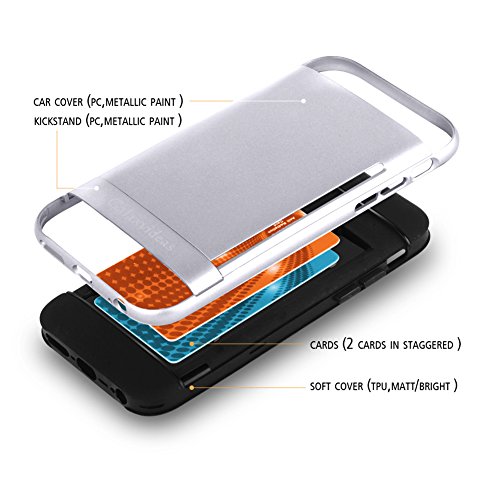 Zenken Hybrid iPhone 6/6S Case used the best phone case material, Soft TPU and Hard PC. All the material are truly light weight and durable.This case can protect iPhone 6 in most situation in daily life while offering extra card holder function, everyone likes it. Compatibility: for the Regular size [4.7-inch screen] iPhone 6/6S Soft TPUSoft TPU case inside provides the Phone with drop resistance in case phone drops. The form-fitted processing ensures the case fits the phone perfectly, avoid scratches when putting on/removing the case. TPU bumper provides a tight grid to ensure secure holding. Hard PCHard PC cover, good looking and smooth touch feeling. Solid PC can, to a large extent, provide shockproof function, and it is easy to clean.Sliding card holder can hold up to 2 cards, you can carrying you ID, credit card of some case when going out. Warm Tip:The slider is a little tight, it's designed to make sure the card can stay inside safely. You may find it easier to slide after several times.Package includes 1 case for iPhone 6/6S If the plastic frame and the TPU case separated,just put them all together then it can be used again, as this is a 2 pieces case.