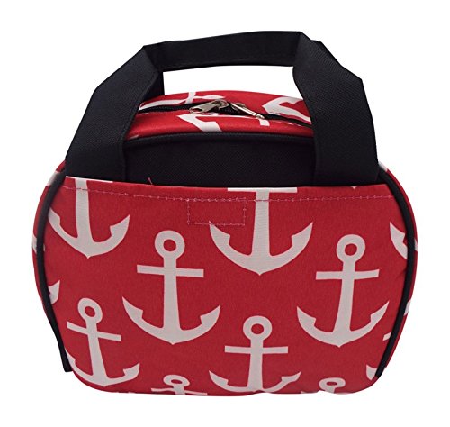 Womens Insulated Lunch Tote Bag (Red Anchors w/ Black Trim)