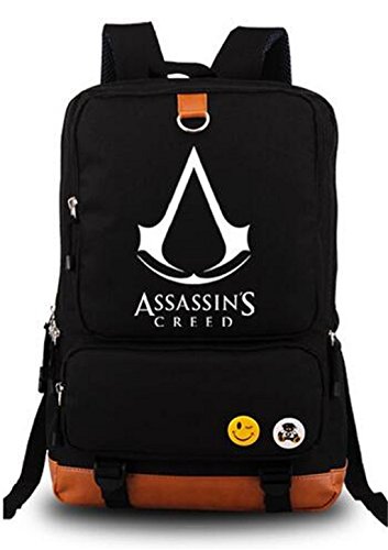 Dimension: approx. 11.4" x 5.5" x 17.3" (L x W x H). Material: Made of high quality canvas. Structure: main zipper pocket, side pockets, front pocket with cover, inside computer compartment, phone pocket. There is enough space to hold books, laoptop, ipad, camera, magazines and lots of your daily supplies. Perfect gift for your friends and Assassin's Creed fans or go to school, daily use and travel. Due to the difference of computer monitors, the colours maybe slightly different from the pictures. There might be 1-2cm deviation due to manual measurement.